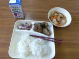 5月29日(木) 今日の献立は、ちくわのいそべあげ、あつあげとさといものみそ煮、...