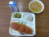 5月30日(金) 今日の献立は、ごはん、プルコギ。とうふとわかめのスープ、さん...