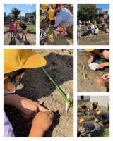 1年生は、学習園に田辺大根の種をまきました。田辺大根は、なにわ伝統野菜のひとつで...