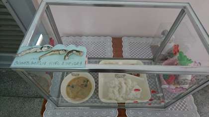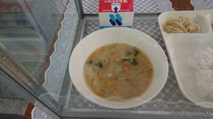 本校の給食室では4人の給食調理員が本校児童・教職員と