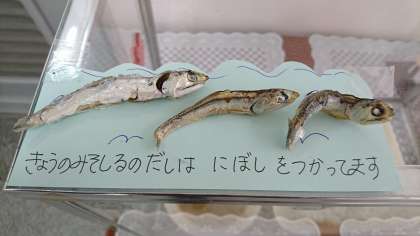 今日のみそ汁、煮干しを使って出汁を取っていたので、