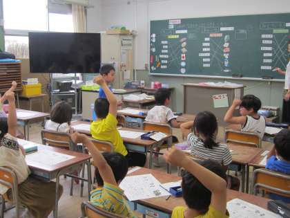 6月12日 今日は、1年生が食育の学習をしました。巽東小学校から栄養教諭の田中先生に来ていただきすべての学年で食育の授業をしていただいています。今日の学習内容は、「たべもののなかまわけ」です。1年生の子ども達は、楽しく学習していました。