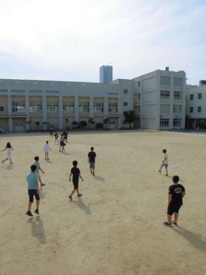 運動場で、ボール遊びをしていました。