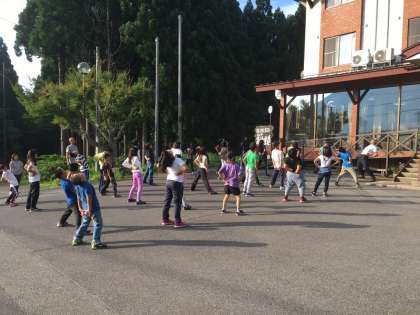 3日目のスタートです。今日も晴天です。みんな起床時刻より早く起きて宿舎の前に集合しました。
