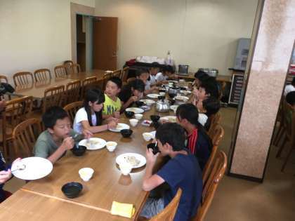 林間学習で最後の食事です。メニューはチャーハンです。