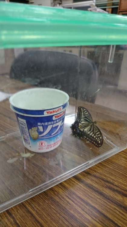 飼育ケースの中に、羽化したアゲハ蝶が!