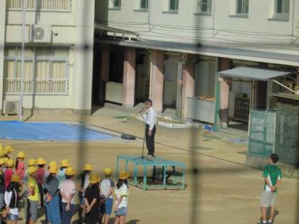 毎週月曜日の朝は、全校児童が運動場に集合・整列し、