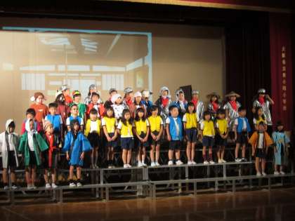 16日の学芸会にむけて各学年では、最後の仕上げにかかっています。衣装や大道具、小道具なども完成し、子ども達の演技に磨きをかけています。会場となる講堂も、4年生が長椅子を並べ、5年生が体育用具を2階に運んでくれました。おかげで、会場の準備がほとんど終わりました。