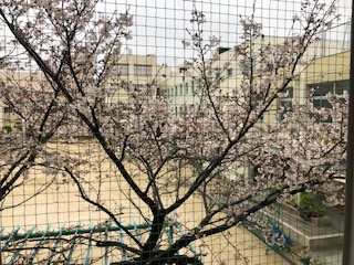 (校長室から素敵な桜が見えます。最高の景色です!)