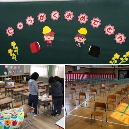 教職員は明日の「入学式」の準備に取り掛かっています。