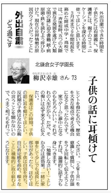 ?令和2年4月18日(土)子どもの話に耳を傾けて