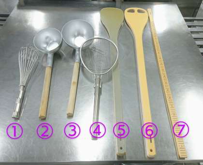 給食室では調理をする時に色々な道具を使います。