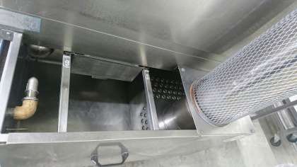 食器洗浄機には、前方に上下4本のパイプがあり、60〜80度のお湯が出て、後方に上下2本のパイプがあり、そこからは水が出ています。