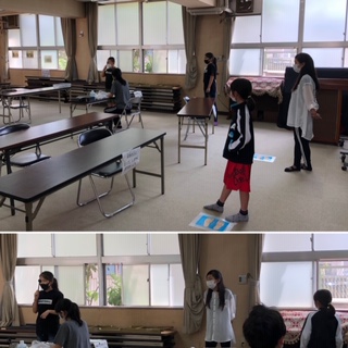 5人ずつが部屋に入り、ソーシャルディスタンスを守って並びます。最新の検査機で保健の先生が一人で検査します。子どもたちは入る前に手洗いをして、感染症にも注意します。