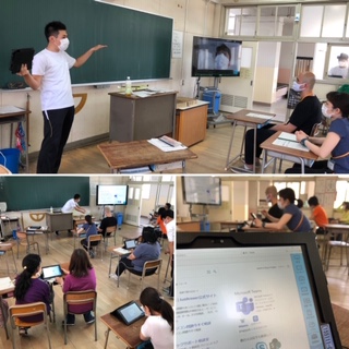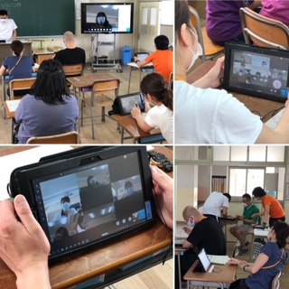 視聴覚部のリーダーが中心になって、みんなでまずは大人が使えるように最初の学びです。「Teamsって何?」「どんなことができるの?」から始まって、まずは個人専用のタブレットにソフトをインストールしました。そして、実際に参加して画面で交流しました。画像の映りが正直言い状態とは言えないものの、画面が9分割され、1人ひとりが映る様子を体験して、実際に子どもたちとつながる感覚をおぼえました。