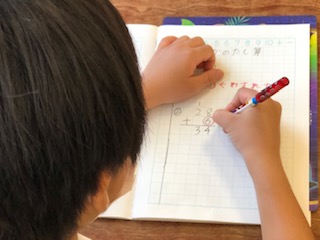 筆算する時に大切なことは位です!子どもたちはサシを使って、位に気をつけながらていねいにノートに書いています!教員の板書も位を意識したていねいな板書になっています!大きく手を挙げて答える子どもたちがとても素敵です!