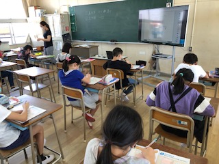 子どもたちは、たて!横!高さ!や一辺を意識して、立体について調べていきます。図形の学びに大切なことは、イメージです!そして、そのイメージを膨らませるのに役立つのがICT!まだまだ活用の幅は広がります。