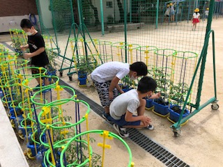 子どもたちが育てているミニトマトがスクスクと成長しています!