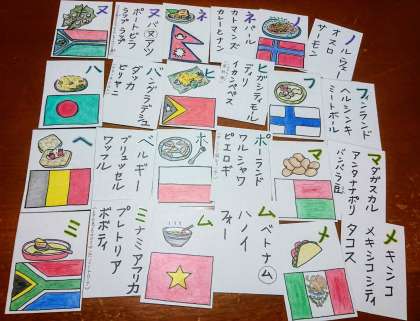 カタカナで国と、首都と、その国の代表的な食べ物が書かれたカルタが完成しました。