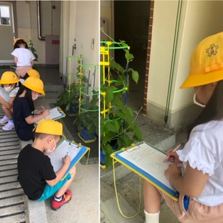 どの子もアサガオの見事な成長に驚きと感動を表現していました!