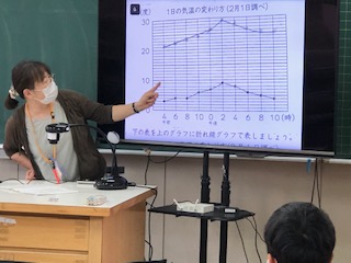 「天気と気温」の学習です!子どもたちは、1日の気温の変わり方をグラフと表から読み取ります!