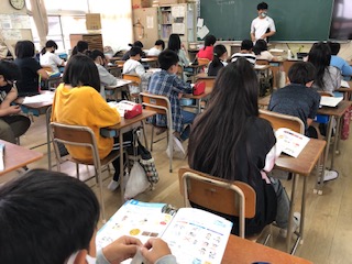 予防するにはどうしたらいいのか?改めて子どもたちと確認する時間になりました。咳エチケットの大事さ!ウイルスはどこに多いのか!などなど、自分の身近な場面や場所を思い起こす子どもたちです!