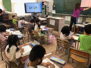 子どもたちは板書が始まると、だまってノートをとりだしました。ひらがなの学習も定着してきて、自分でどんどん書けるようになっています。