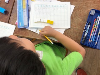 はじめに…あとから…と言葉に注目して!合わせていくつを意識していきます。ブロックを使いながら、がんばる子どもたちです!