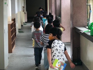 みんな手には本を持っています!これから図書室に行くようです。