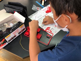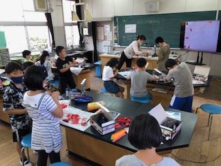 「電気のはたらき」の学びです。理科学習のための工作教材のひとつ。車として走らせるためには、モーターが必要!そのモーターの原理を学ぶ子どもたちです!