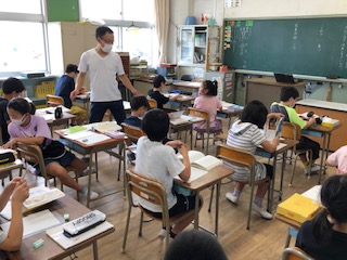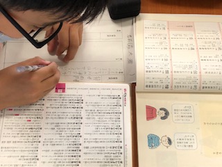 使い慣れない言葉を辞書を引いて調べながら、自分の言葉で文づくりをしていきます。まさに、「自分で考え、自分から表現する子どもたち!」