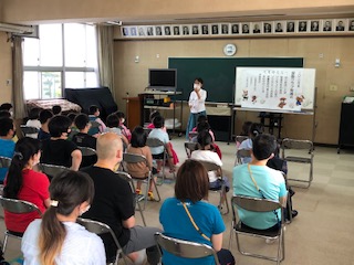 長い休みの後、新型コロナウイルス対策の中、多目的室に保護者のみなさんも集い、子どもたち、教職員とともに開かれました。
