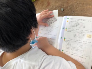 2枚の三角定規を重ねてできる角度を考える問題!これ、ややこしいですね!それでも、子どもたちは必死になって答えを導き出そうとしていました。