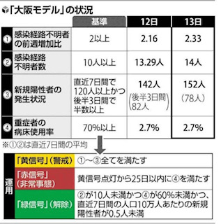 とうとう大阪モデルが黄色を点滅しました!再びの感染拡大が広がっています。