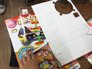 まずは部品を切り取る作業です!ハサミは使わず、ミシン目に沿って、ひとつずつ丁寧に切り離します。子どもたちの目がキラキラしていました!どんな作品になるのか楽しみです!