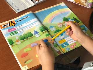 自分の好きな色を使って、オリジナルの虹をつくります。色の単語を調べながら、「私は〜が好きです」の表現を学びます。