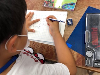 「つくえの長さをしらべよう!」をテーマにして、友だちと協力しながら、身近なものを使って長さをしらべます。