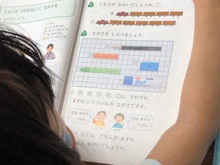 今日はマス目を使って長さを調べます!マスの何個分になるのかを子どもたちは見つけます!
