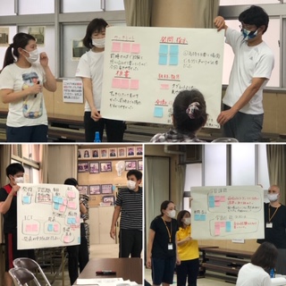 グループ協議をまとめる役は前回とは違うメンバーです。こうして、いろんな教員がリーダーをすることで、「自分が考え、自分から表現する」大人の姿を映し出すことができます。