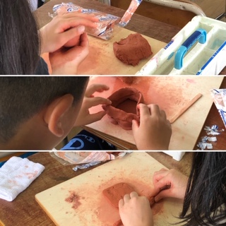 子どもたちは社会科で学んだ縄文土器や弥生土器から、自分なりの自分らしい土器の製作に取り掛かりました!