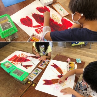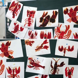 よーく観察しながら、見事なザリガニを描いた子どもたちの絵が完成しました!