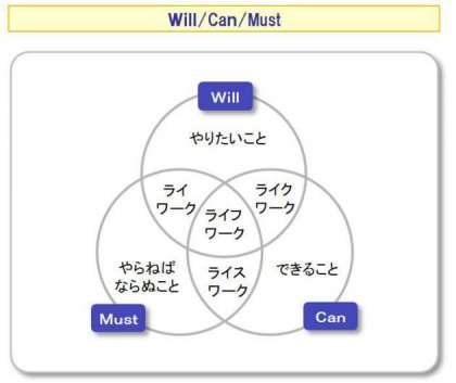 「Will-Can-Must」という動機づけの法則をご存知でしょうか。Will.Can.Mustの3要素が交わる時、モチベーションを最大限に引き出せるという法則です。上の図をご覧ください。