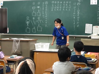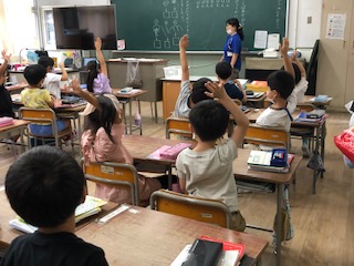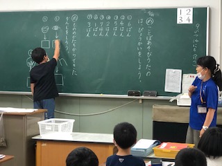 子どもたちは先生の絵文字から漢字を想像して見つけます!