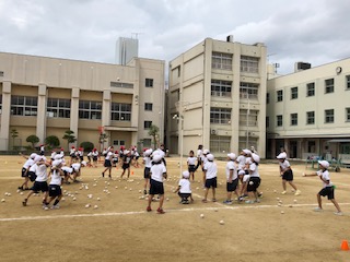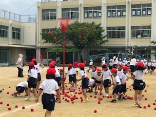 これまでのエアー玉入れから、今日は本番さながらのほんとの玉入れです!