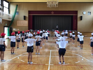 少しムッとしている体育館では、子どもたちがちょっと変わった体操にチャレンジしていました。