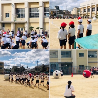 1年生にとっては初めての運動会です!「タッタッタッタタイヨウ!〜」の音楽で準備運動!ポーズが決まってかっこよかったし、可愛かったです!玉入れも大玉送りもやっている子どもはもちろんですが、見ている子どもたちが自分ごととして必死になる姿が素敵でした!「チェッチェッコリチェッコリッサお尻をふって!」可愛かったよ!