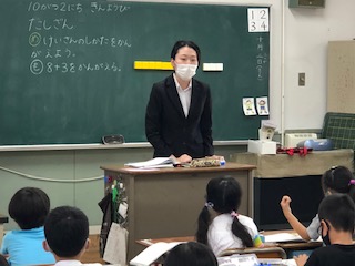 子どもたちはしっかりと前を向いて、先生や友だちの話を聞くことができました。実習生も落ち着いて授業を進めていました。