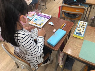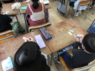 子どもたちは算数の計算カードを使って学びを深めていました。