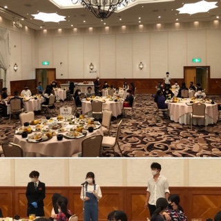 大きなホールにワンテーブル5から6人と少人数のグループでゆったり食事!これも感染症対策のひとつです!