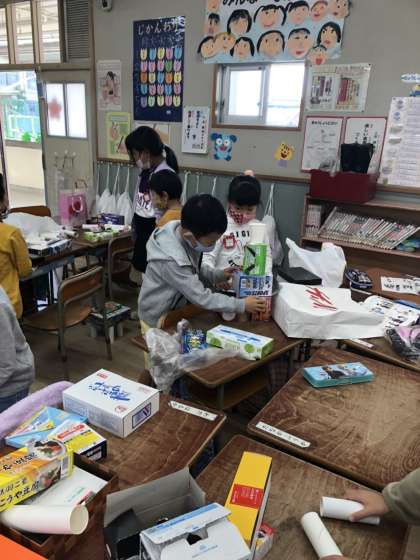 子どもたちの作品づくりにご協力ありがとうございました!たくさんの箱をご用意していただけたことで、子どもたちの作品意欲に火がつき、とてもステキな学びになりました。